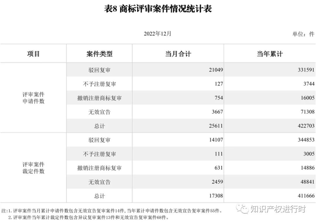 2022年商標注冊量相比2021年商標注冊量減少156.18萬件(同比下降20.18%)。2022年異議申請、申請駁回復審、申請撤銷商標注冊復審的量相對2021年也有所下降。